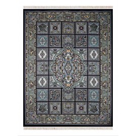 فرش ماشینی 700 شانه نیاوران طرح بهشت زمینه سرمه‌ای..